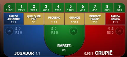Você deve escolher entre um ou outro. Você ganha se as duas primeiras cartas do jogador ou banca formarem um par, como dois K (reis) ou dois 5. A taxa de pagamento geralmente é de 11:1, tornando-se uma aposta atraente para jogadores que buscam retornos mais elevados com um risco moderado.
