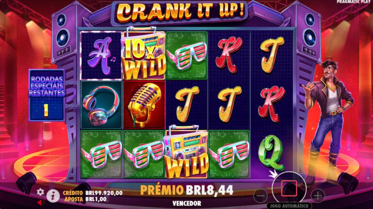 O Crank it Up é um slot no qual você pode ganhar dinheiro jogando. Apesar de não garantir ganhos, o jogo conta com recursos que podem aumentar suas chances de vitória, como os giros grátis e wilds multiplicadores.