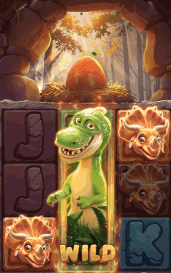 Quando símbolos T-Rex empilhados aparecem, eles se transformam em Wilds e permanecem fixos na grade.