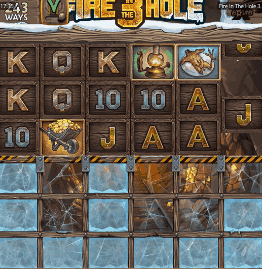 Fire in the Hole 3 é o slot da sequência da franquia Fire in the Hole da Nolimit City. O jogo se passa em minas congeladas, nas quais símbolos caem em cascata e podem abrir mais espaços na grade.