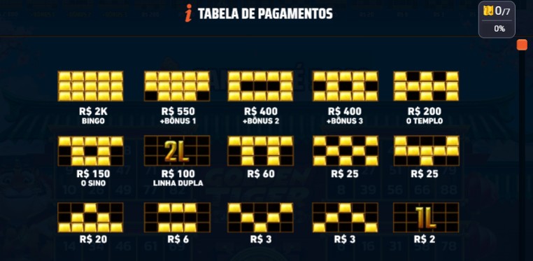 No geral, os pagamentos em Golden Tiger: Jackpot Fortunes variam conforme os padrões completados nas cartelas escolhidas.