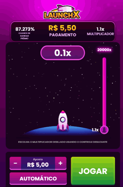LaunchX aposta na temática de lançamento de foguete, famosa no meio dos jogos de crash, porém com um diferencial: neste jogo, você pode escolher o multiplicador em cada rodada.