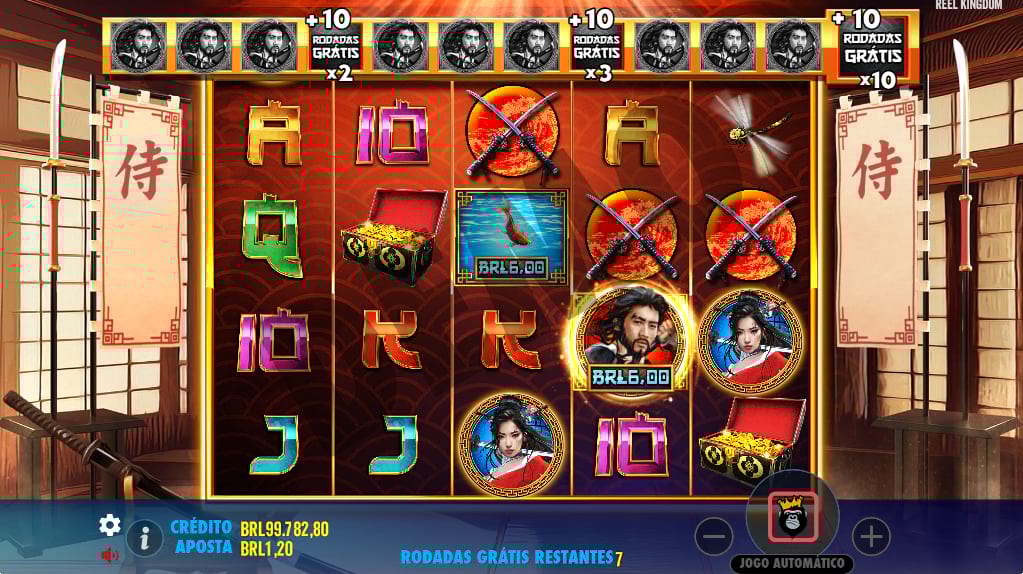 - Wild: Representado pelo samurai, ele substitui outros símbolos, exceto o scatter, para ajudar a formar combinações vencedoras. Durante as rodadas grátis, o símbolo wild coleta os valores dos símbolos de dinheiro, aumentando os ganhos dos jogadores.