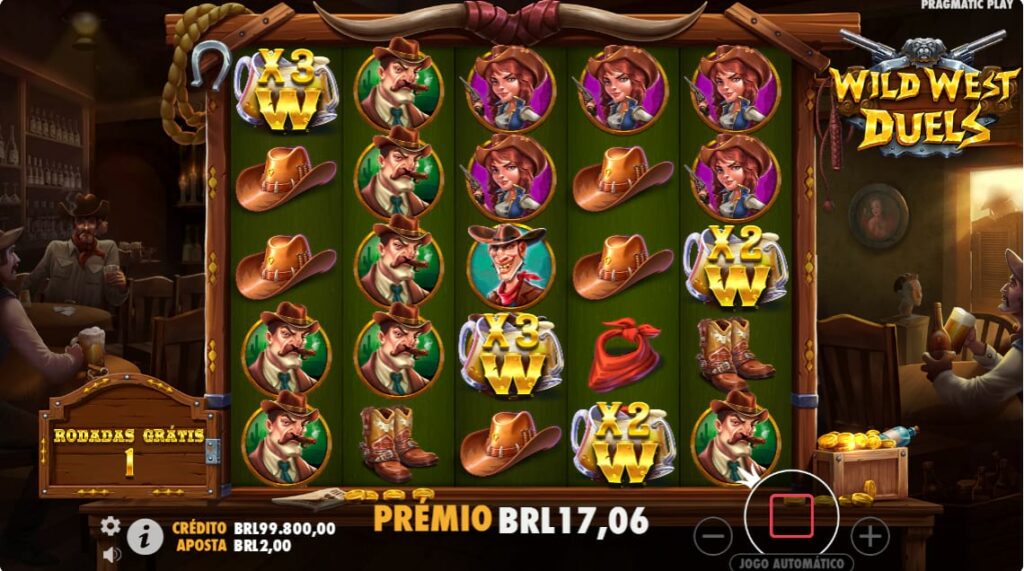 O valor mínimo de aposta no jogo Wild West Duels é de R$0,20.
