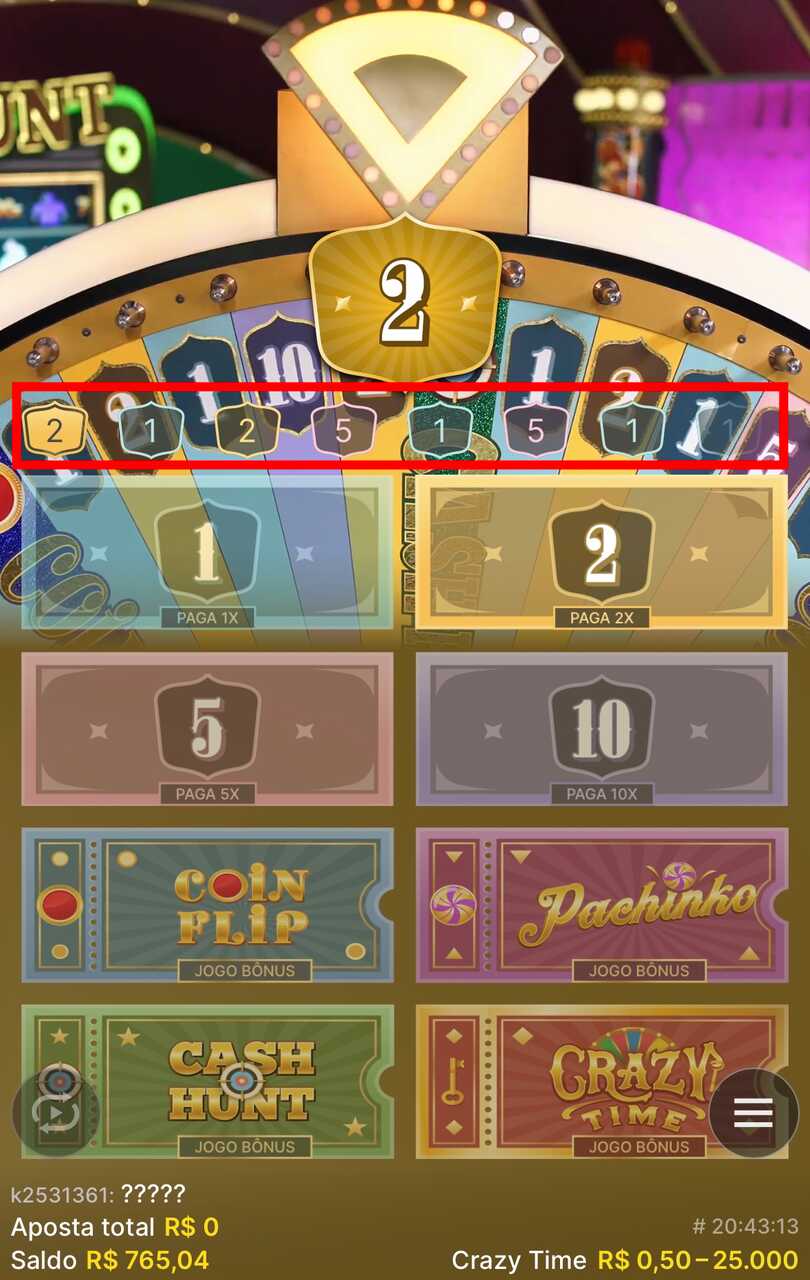 Você pode ver o histórico Crazy Time diretamente na página da KTO enquanto joga.