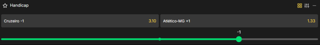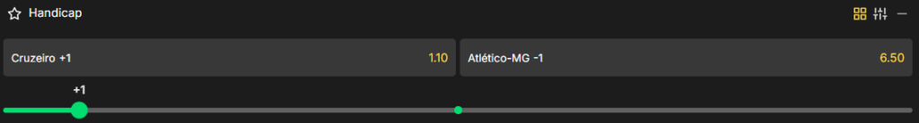 O handicap asiático altera as odds ao ajustar as condições do jogo para criar um campo de apostas mais equilibrado. Abaixo, exemplificamos melhor como esse tipo de aposta funciona na prática com um exemplo de uma partida do Cruzeiro: