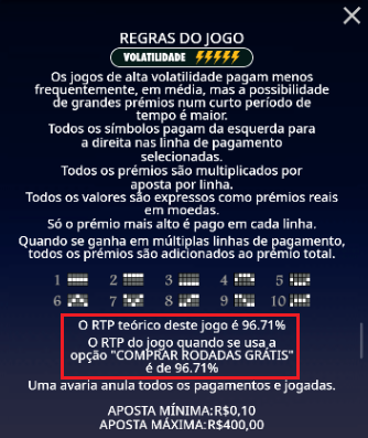 Um RTP alto indica maior retorno teórico ao longo do tempo, mas não garante ganhos mais altos para o jogador. Lembre-se de que os jogos de slot são baseados em RNG, ou seja, suas rodadas são completamente aleatórias, não há garantias.