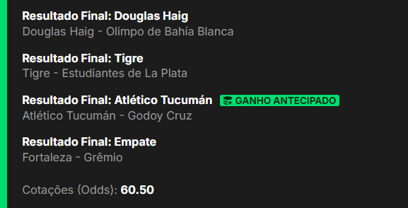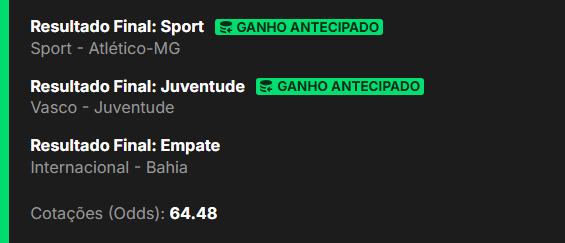 Essa aposta simplesmente atingiu uma odd de 64! O nosso influenciador confiou em seu conhecimento e acertou três resultados do futebol brasileiro! Veja os detalhes abaixo: