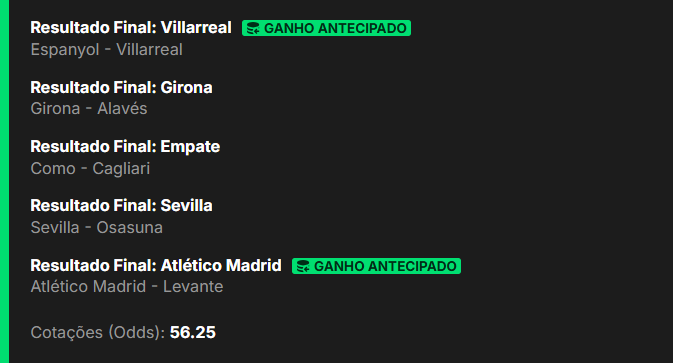 Além de dominar o ranking da Liga do Milhão, os líderes do ranking da KTO também se destacaram — combinando apostas múltiplas ousadas com ótima leitura de jogo. Abaixo, selecionamos três apostas que se destacaram na semana: seja pela ousadia das odds, pela quantidade de seleções ou pela inteligência nos mercados escolhidos.