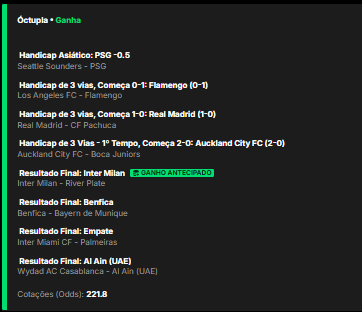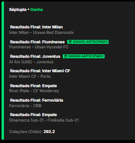 No mês de junho o Meu Timão tava impossível e acertou outra uma múltipla com diversos mercados, usando jogos do mundial de Clubes para fazer a boa. Mais uma entrada cirúrgica na Liga do Milhão!