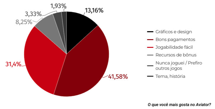 Nós sim! Por meio de uma pesquisa de opinião, descobrimos que as principais características que fazem os jogadores gostarem tanto do Aviator são: os bons pagamentos (41,58%), a fácil jogabilidade (31,4%) e seus gráficos e design (13,16%).
