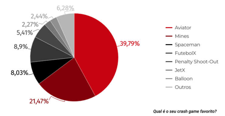 Durante todo o estudo, o Aviator se manteve consistentemente em primeiro lugar em popularidade entre os jogos de crash. Não é surpresa, portanto, que cerca de 40% dos entrevistados consideram o Aviator seu jogo de crash favorito.