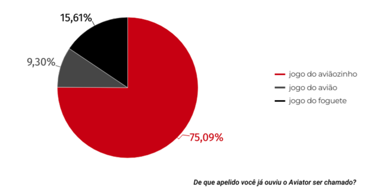 Quando contrastamos esta lista com dados de nossa pesquisa, reforçamos que o apelido pelo qual as pessoas mais conhecem o Aviator é “jogo do aviãozinho”. Mais de 70% dos entrevistados afirmaram já terem ouvido o Aviator ser chamado assim.