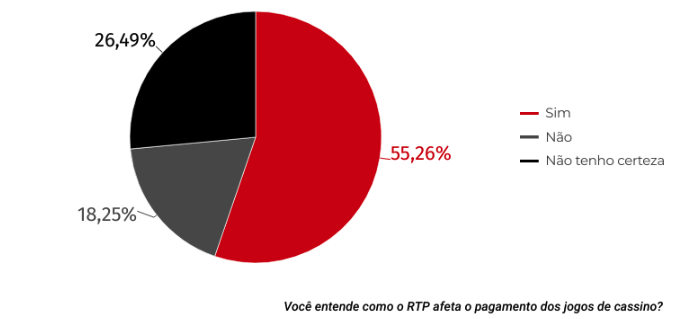 Em nossa mais recente pesquisa, mais de 55% dos entrevistados afirmaram entender como o RTP afeta o pagamento dos jogos de cassino. A outra metade, ou não sabia (18,25%) ou não tinha certeza (26,49%) sobre como essa métrica funciona.