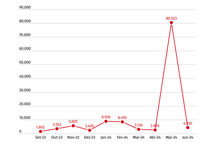Não apenas isso, em 2024 tivemos os maiores multiplicadores desta série histórica. Os meses de janeiro (8.926) e fevereiro (8.493) ficaram, respectivamente, em segundo e terceiro lugar neste ranking.