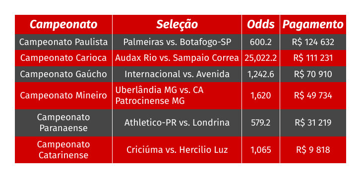 No Campeonato Carioca, uma aposta com odds de mais de 25022 pagou R$111 231!