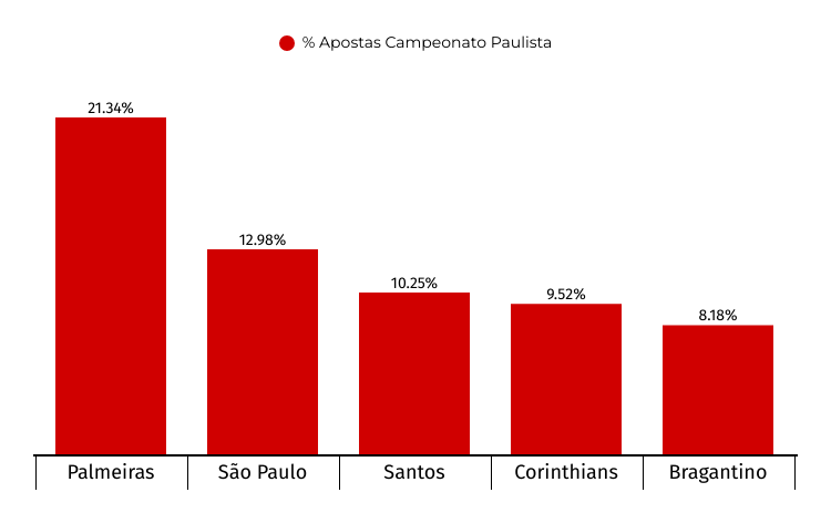O Campeonato Paulista, o maior campeonato estadual braisleiro, fica em segundo lugar, com 21.4% das apostas em campeonatos na KTO.