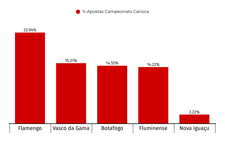 O Campeonato Carioca, com times de peso como Flamengo e Fluminense, completa o pódio, com mais de 20% das apostas.