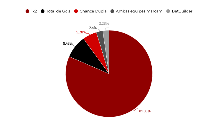 - Mercados: A porcentagem de apostas feitas nos principais mercados;