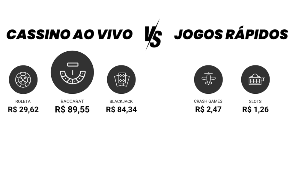 Essa disparidade pode ser explicada pelo perfil dos jogadores e pela dinâmica das modalidades. Enquanto os jogos rápidos atraem apostadores casuais que realizam múltiplas apostas menores, os jogos de cassino ao vivo costumam ser associados a estratégias mais elaboradas, onde os jogadores estão dispostos a apostar valores mais altos por rodada.
