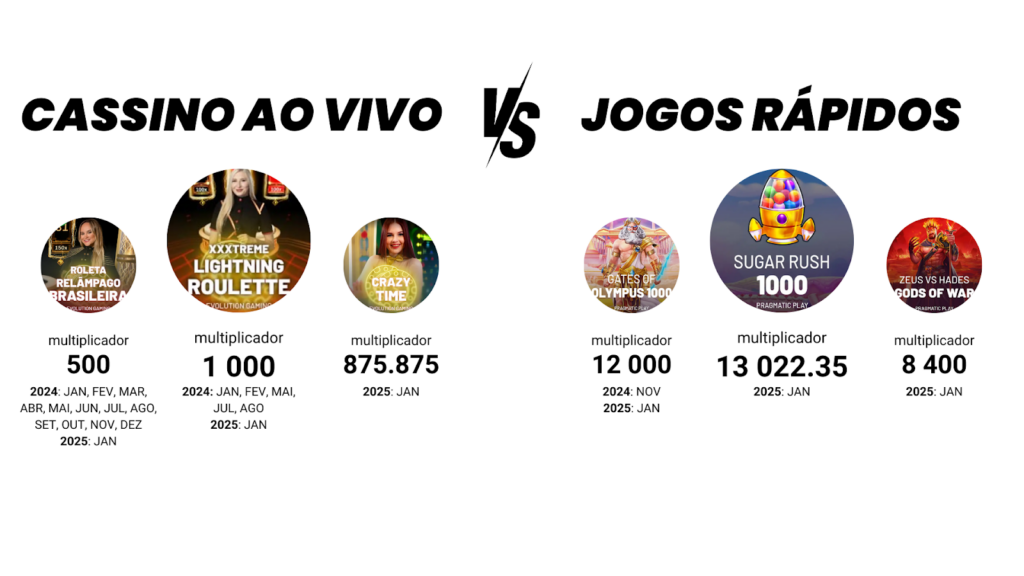 Se você ainda não definiu seu tipo de cassino online favorito e quer saber quais são os títulos que oferecem os maiores multiplicadores para a sua aposta, há um dado relevante: os jogos rápidos apresentam, em média, multiplicadores quase 17 vezes mais altos do que os jogos de cassino ao vivo.