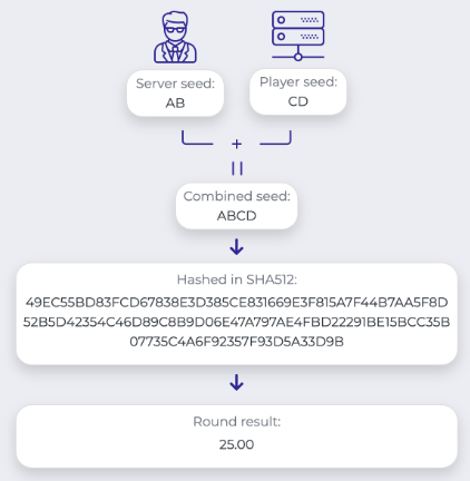 Geradores de números aleatórios (RNG na sigla em inglês) geram bilhões de resultados de jogos, assim como em outros jogos de cassino. Os geradores de sementes são ativados pela contribuição do jogador no início da sessão de jogo (ou rodada), permitindo o monitoramento em tempo real e a verificação subsequente da integridade do jogo. E, por último, o hashing criptográfico encurta as sequências de dados aleatórios, mas valida o algoritmo imutável que produz os resultados do jogo. Tanto que os resultados de cada rodada podem ser checados e verificados!