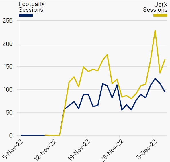 Os dados acima são uma fotografia do desempenho dos jogos no final de 2022, de 1º de outubro a 5 de dezembro. O surgimento de novos jogos como JetX e FootballX já traz resultados notáveis e esperamos que eles sejam ainda mais acentuado nas próximas semanas, com base no forte aumento de popularidade de outros jogos de crash.