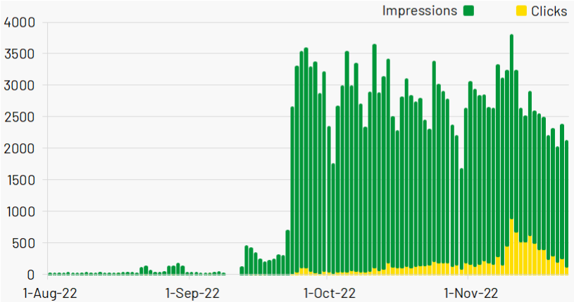Vemos que as impressões e os cliques simplesmente dispararam em meados de julho.