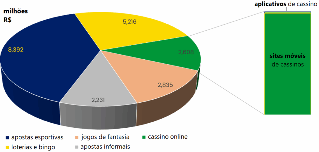 Em 2017, o mercado de jogos no Brasil valia cerca de R$ 2,2 bilhões, com 60% vindo de apostas esportivas e 40% de cassinos online.