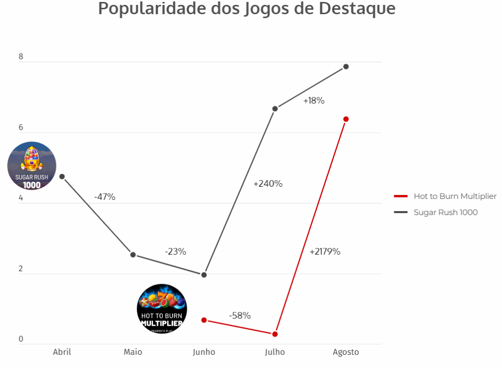 Entre as novas entradas, o Sugar Rush 1000 se consolidou no top 10, destacando-se como um dos jogos mais populares com 7,87% de popularidade e mostrando um crescimento significativo em comparação a julho.