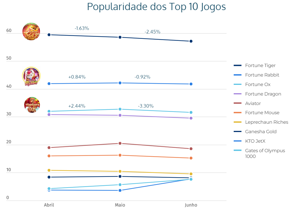 Fortune Mouse e Leprechaun Riches experimentaram um declínio notável na popularidade de maio a junho, de 6,56% e 10,46%, respectivamente.