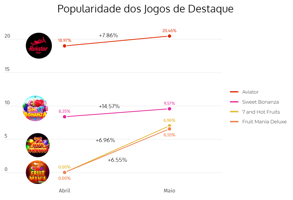 Novos títulos como 7 and Hot Fruits e Fruit Mania Deluxe entrou no top 10 em maio, refletindo a atração dos jogadores por novos conteúdos