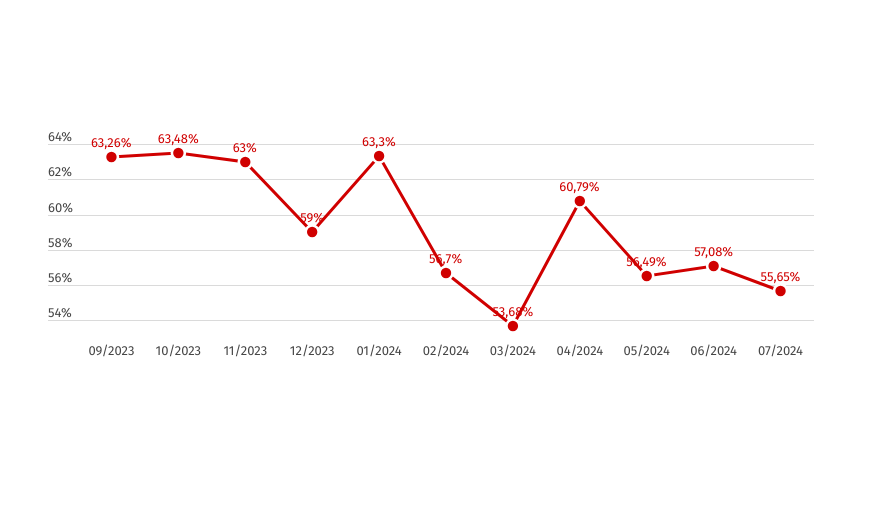 A partir de março de 2024, observamos uma leve oscilação, mas a tendência geral foi de estabilização até o final do período avaliado.