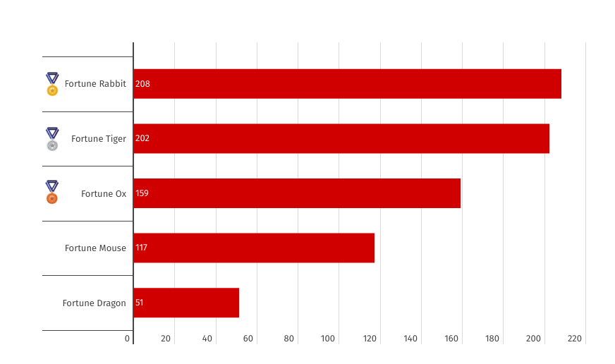 Junto com Fortune Ox (9,5%), Fortune Dragon (8,5%) e Fortune Mouse (3,06%), a série Fortune domina completamente o Top 5, mostrando ser a favorita entre os jogadores.