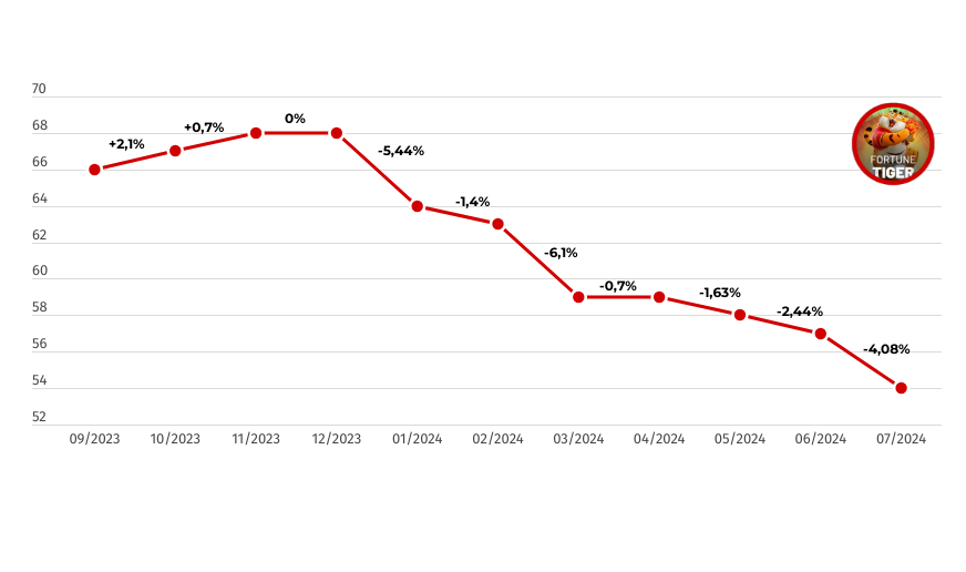 O número 1 dos caça-níqueis da KTO, Fortune Tiger, também conhecido como jogo do tigrinho, sofreu uma queda de aproximadamente 15% em sua popularidade desde janeiro de 2024.